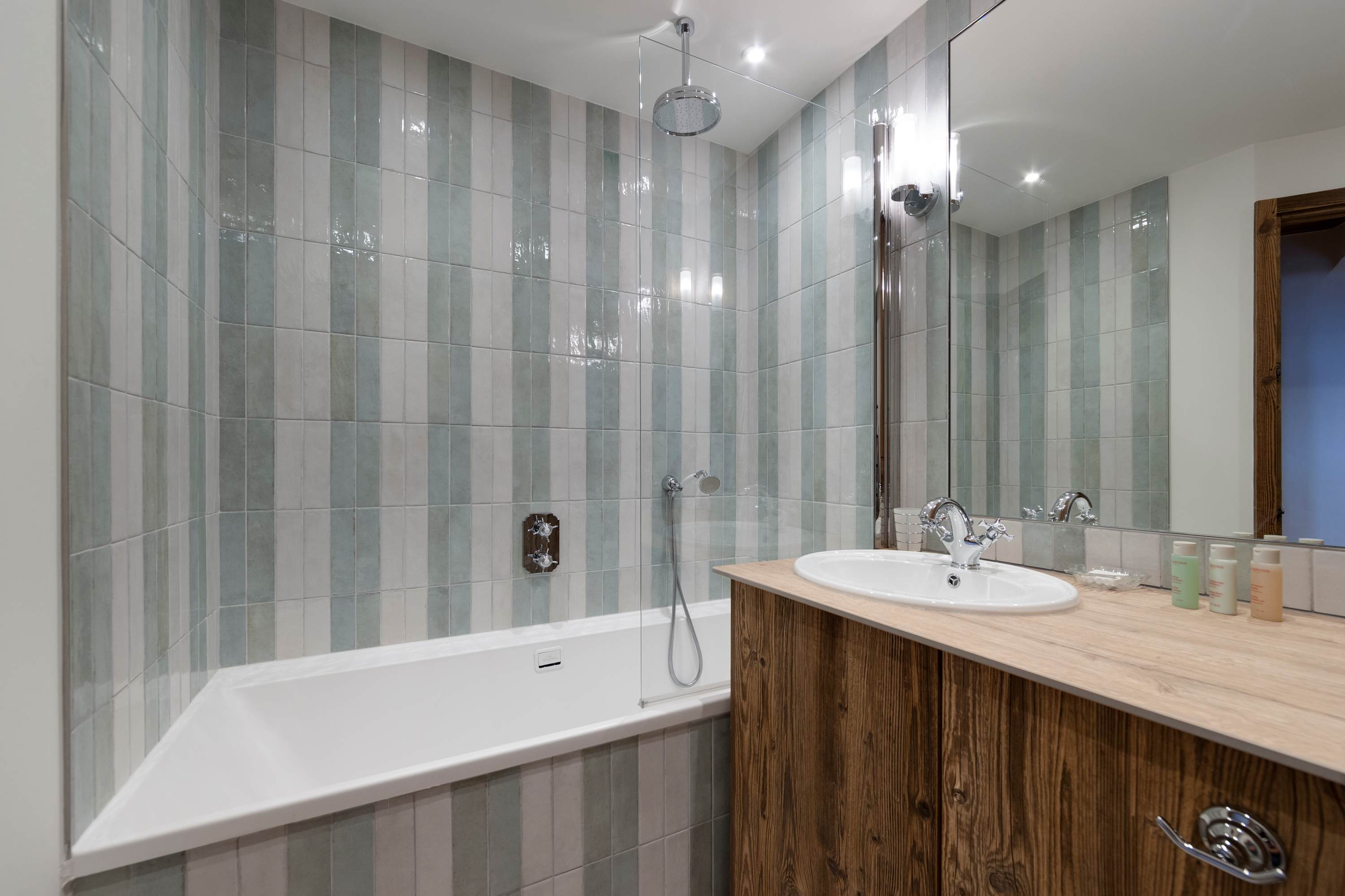 Bedrooms 2 & 3 are twin bedrooms that have double duvets in addition to singles if you prefer a double set up (but the beds do not lock together for a double). They share a bathroom with a bath, glass panel, wall mounted shower, basin & WC. A washing machine is also available for client use.